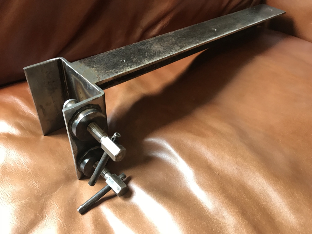 工作室によくある万力の締め金具を応用して、LGSパネルの胴縁にDIYで留めつける棚板金物。棚板以外にTVボード、カウンター、洗面台と幅広い用途に利用することが可能です。