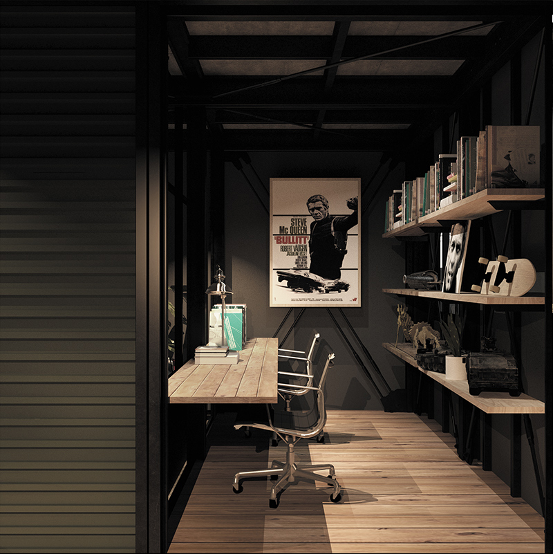 コントラストの効いた空間で、愛車の存在感をさらに際立たせてくれませす。ガレージには自分だけの趣味空間を構築できるホビールームも併設。