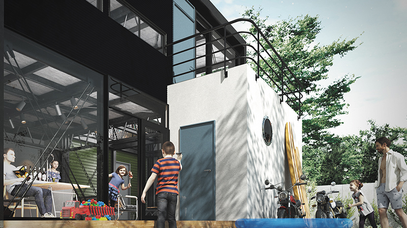 家族全員がこの家を拠点にもっと人生を楽しめる、趣味のベース(基地)になるように規格・設計しています。